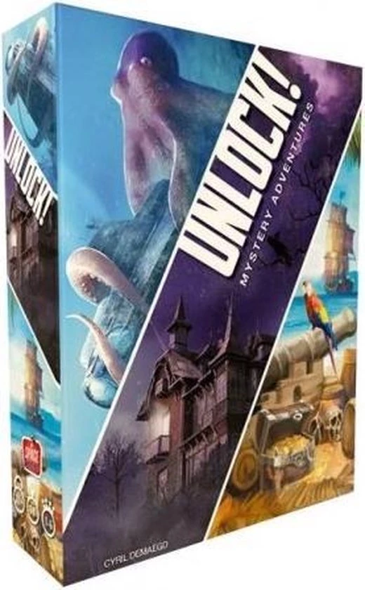 Unlock! Mystery Adventures features three new “escape room” scenarios that you can play on your tabletop: • The Nautilus’ Traps: Attack by a sea monster during a dive, you seek shelter by opening an old hatch in an old submarine. Find a way back to the surface! Designed by Arnaud Ladagnous, illustrated by Florian de Gesincourt. • The House on the Hill: What’s going on in this run down manor? Explore the sinister pieces and foil the curse that haunts this desolate place. About the same difficulty as Squeak and Sausage. Designed by Fabrice Mazza, illustrated by Pierre Santamaria. • The Tonipal’s Treasure: Captain Smith hid his treasure on Tonipal Island. Unravel the mystery before Johnson, another treasure hunter, beats you to it! The most difficult of the three but still easier than Island of Doctor Goorse. Designed by Billy Stevenson & Sebastien Pauchon, illustrated by Sergo.