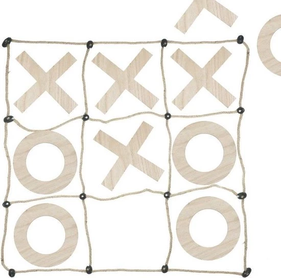 Elk pakket bevat 1 x 1m vierkant touwbord en 5 x O’s van 25 cm (D) en 5 x X’s van 25 cm (H) x 25 x m (B)