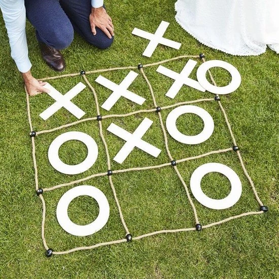 Het boter, kaas en eieren spel, beter bekend als OXO, kan je nu ook in een hippe en reuze formaat spelen. Speel dit spel op je bruiloft en houd de kleintjes bezig met enkele buitenspellen voor het huwelijk. Je kan het spel ook gewoon met vrienden of familie in de zomer, buiten in een park of de tuin spelen.