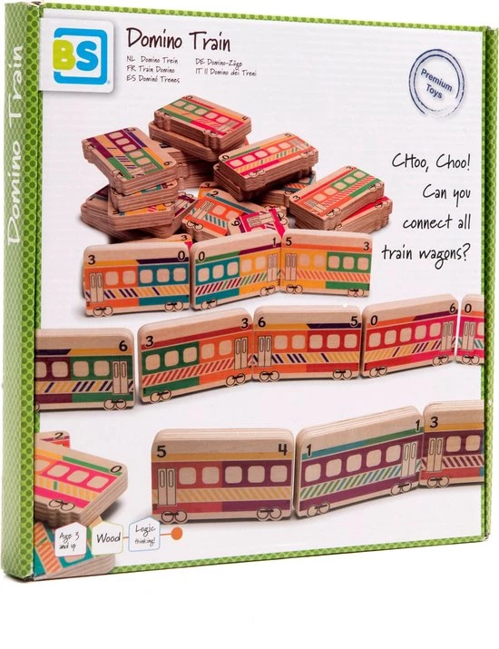 Een super coole variant op Domino. Niet alleen kan deze te gekke trein gewoon rechtop staan, hij is ook nog eens op heel veel verschillende manieren te gebruiken. Schakel jij de kleuren aan elkaar, de nummers, het wagonmerkje of één van de andere 7 kenmerken van iedere wagon?