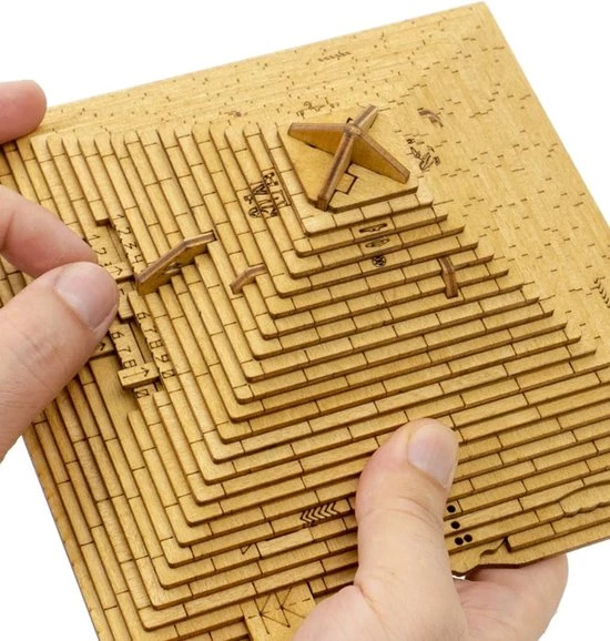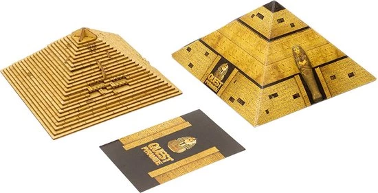 Je moet alle puzzels oplossen om toegang te krijgen tot het geheime vak binnenin. Bekijk Quest Pyramid zorgvuldig en zoek naar speciale symbolen. Deze zullen je helpen de mechanismen te begrijpen en de mysterieuze Quest Piramid te openen. Gemiddeld duurt het 60-90 minuten om alle puzzels op te lossen en de piramide te openen. Het spel is ontworpen voor maximaal 2-3 spelers. Je zult Quest Pyramid echter ook met veel plezier alleen spelen.