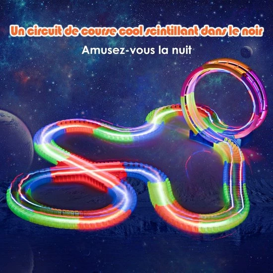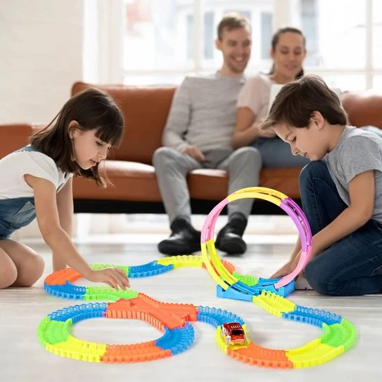 Dit speelgoed is speciaal en heeft de eigenschap dat het oplicht in het donker, wat het spelen ‘s nachts nog leuker maakt. Het is speciaal ontworpen met een achtbaanbaan, uw kinderen zullen genieten van een spannende ervaring van snel klimmen en dalen. Handmatige en cerebrale vaardigheden, evenals motorische vaardigheden konden al op jonge leeftijd worden gecultiveerd. Met deze 360 graden lightrailwagenset zal uw kind zeer geïnteresseerd zijn in het ontwerp van de rails, zodat het zijn fantasie volledig kan gebruiken.