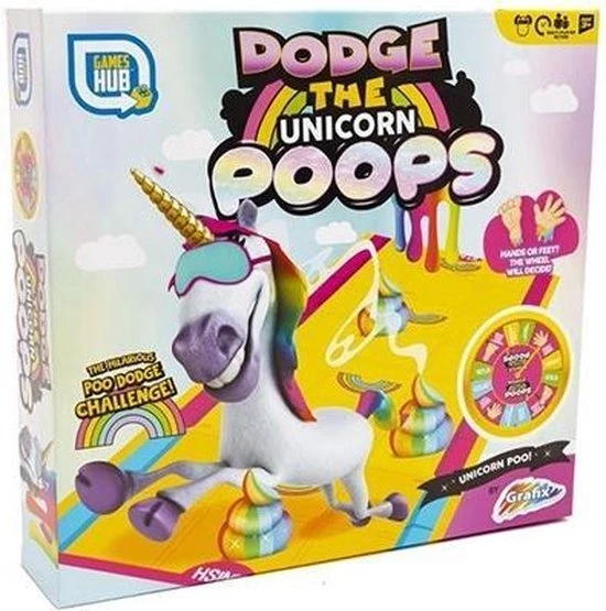 | Verpakkingsinhoud | Een, denkbeeldige, Eenhoorn, laat, poep, vallen!, Kun, jij, de, poepgang, overwinnen?, Gebruikt, je, jouw, handen, of, voeten?, Het, rad, van, het, lot, zal, beslissen!, Je, vormt, de, poep, in, de, vormpjes, voegt, de, speciale, glitter, toe, en, spelen, maar! |