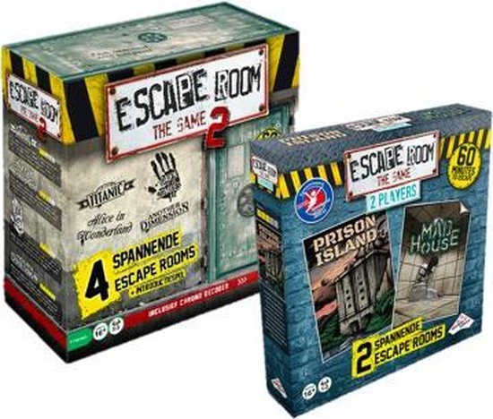 Deze spelvoordeelset bestaat uit het basisspel voor Escape Room en een aanvulset, waardoor je extra lang plezier zult hebben van verschillende “kamers”.