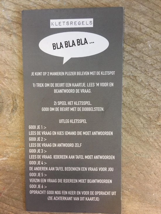 speel het kletsspel en gooi om de beurt met de dobbelsteen.