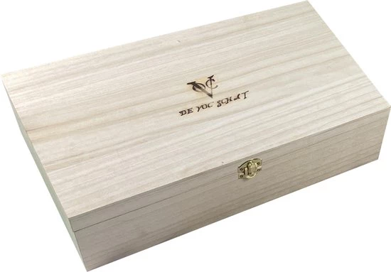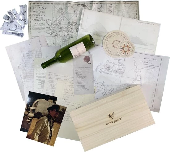 Je ontvangt een echte houten doos met verrassend mooie materialen met verstopte puzzels, raadsels en andere opdrachten.