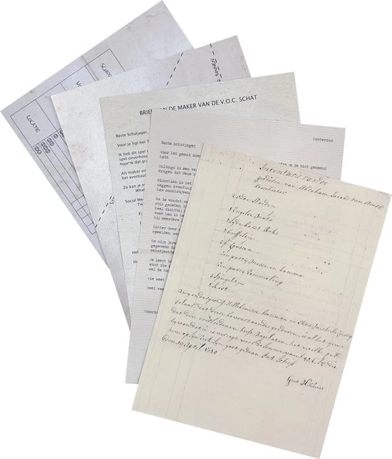 Escape Game De VOC Schat is deel gebaseerd op een waargebeurd verhaal. In het begin van de 18de eeuw verdwenen er regelmatig schepen van de VOC. Vele schepen hadden ladingen met waardevolle spullen, schatten. Tussen de aanwijzingen vind je een pagina uit het originele scheepsjournaal van het schip en de schat waar je naar op zoek gaat. Kortom, deze escape game is een geweldige ervaring met een reis naar het verleden waar een schat op je wacht.