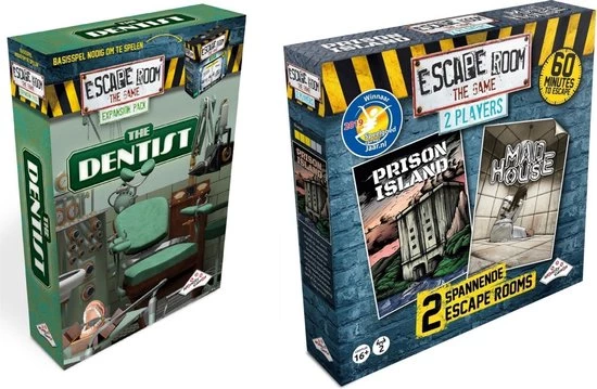 Identity Games Escape Room Dentist uitbreidingsset. Dr. Siènski, jouw tandarts, heeft je uitgenodigd voor de halfjaarlijkse controle. Met frisse tegenzin heb je gehoor gegeven aan de oproep en ben je in zijn behandelstoel beland. Voor je het weet zet hij een kapje over je gezicht. Het laatste wat je hoort is de stem van Dr. Siènski, die zegt dat hij je gaat verdoven met lachgas zodat je geen pijn zal voelen bij het trekken van je kies. Dan wordt alles zwart om je heen….