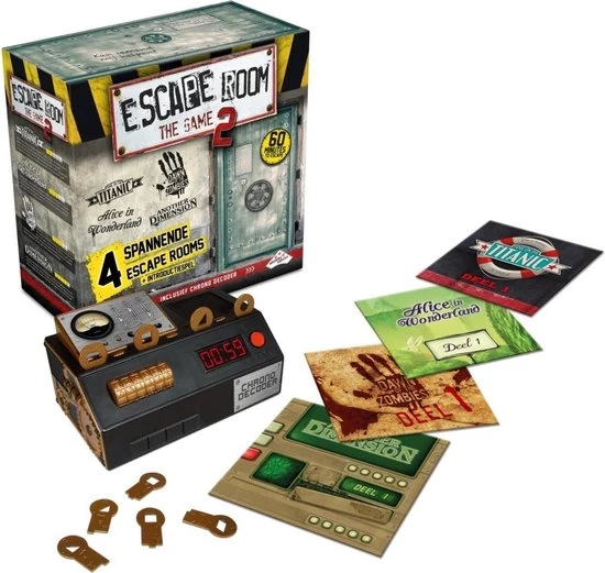 Nog geen ervaring met Escape Room The Game? Dan kun je een uitdagend en onvoorspelbaar spel verwachten! Escape Room The Game is het spel waarbij je moet samenwerken om puzzels op te lossen en verborgen aanwijzingen te vinden. Het is altijd een race tegen de klok; je hebt maar 60 minuten om te ontsnappen. De Chrono Decoder telt af, zorgt voor de juiste sfeer en geeft aan wanneer je hints mag gebruiken. In dit spel win je samen of verlies je samen. Alle spelers moeten het beste uit zichzelf halen. Om raadsels en puzzels op tijd te kunnen oplossen, is teamwork de sleutel tot succes. Onvoorstelbaar hoe snel een uur voorbijgaat in het heetst van de strijd…
