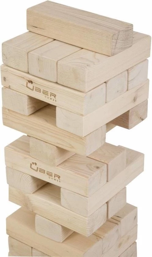 Dit traditionele spel maar dan in gigantische afmetingen. Door de hoge kwaliteit van de 56 blokken kunt u een toren bouwen van 90 cm hoog. Daarna begint het spel. De bedoeling is een blok uit de stapel te halen en deze bovenop te leggen. Hierdoor kan de toren tot meer dan 150cm hoog worden. Als de toren valt heeft u verloren.