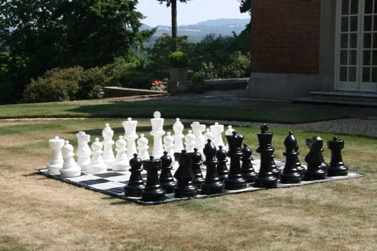 XXXL Giga Schaakmat, 262 x 262 cm, met haringen om de mat vast te zetten, in opbergtas.