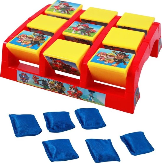 Een actieve variant van ?Boter Kaas en Eieren! Zet het spelbord op de grond en probeer als eerste 3 dezelfde plaatjes van Paw Patrol op een rij te hebben. Maak het extra moeilijk door de speelzakjes van een afstand in het juiste vakje te gooien.