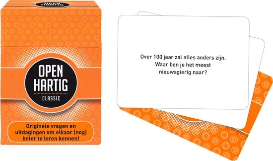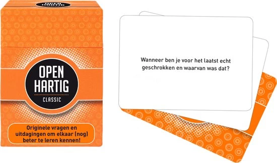 Meer dan 100 afwisselende, verrassende en gedurfde vragen en opdrachten met het spel Openhartig Classic.