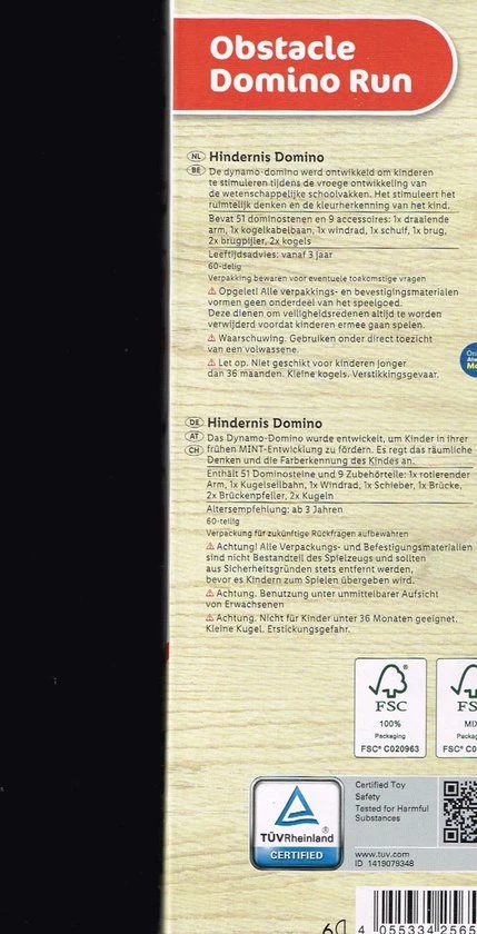 hindernis domino/ obstacle domino run vanaf 3 jaar 60 stuks