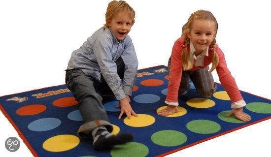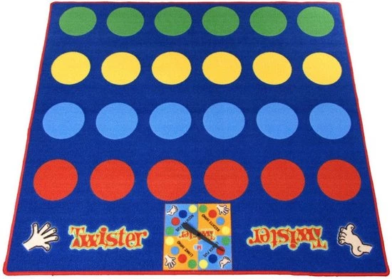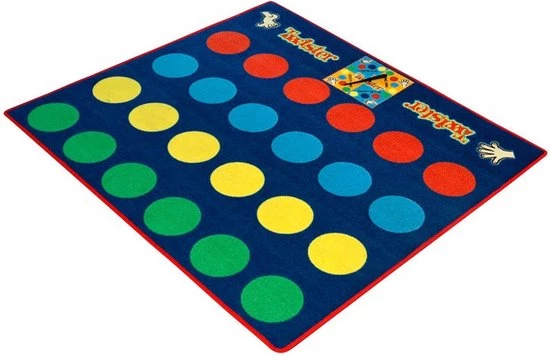 Sterk en slijtvast spelkleed van Twister. Geschikt voor binnen en buiten. Inclusief draaiwijzer.