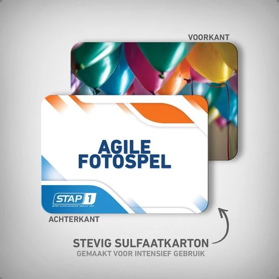 Dit Stap1 Agile Fotospel bestaat uit 50 inspirerende afbeeldingen. Deze afbeeldingen zijn geselecteerd op het vermogen om associaties op te roepen zoals onmacht, overwinning, teamgevoel, angst, vertrouwen en vele andere. Deze set is daardoor ideaal om te gebruiken bij heisessies, kennismaking, teambuilding, retrospectives en andere Agile ceremonies.