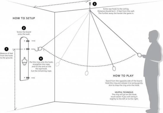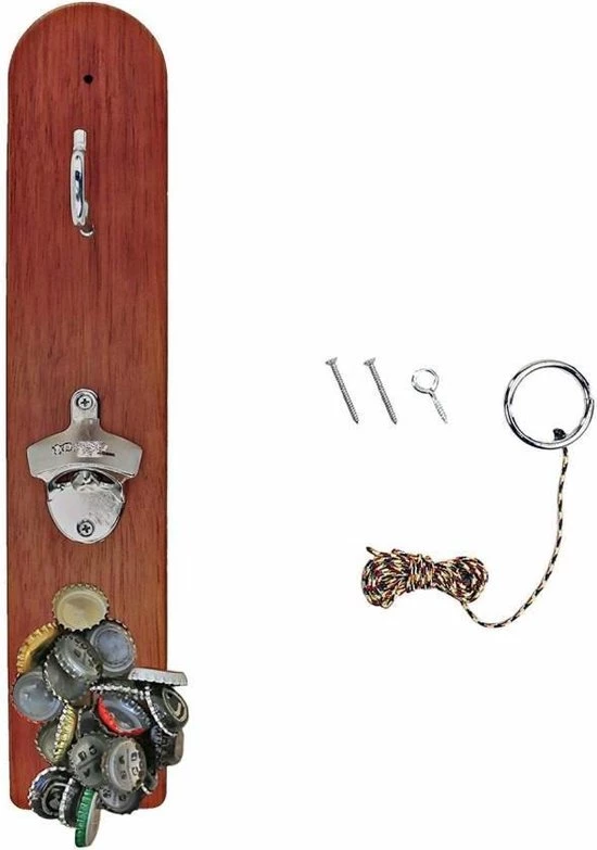 – Spel, compleet met bevestigingsmaterialen– Haak, touw, ring– Flessenopener– Magnetische (middels plaat in hout, niet zichtbaar)