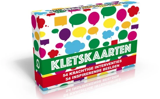 Zoek jij een handige inspiratiebox, om op eenvoudige manier in gesprek te komen met individuen of groepen? Ivo Mijland bedacht de ‘Kletskaarten’. Kaarten die op verschillende manieren te gebruiken zijn, bijvoorbeeld in de mentorles, tijdens een gesprek met een leerling, in een teamvergadering, bij de kennismaking op de sportclub of tijdens een schoolreisje. Het idee is simpel: je opent de box met daarin 54 kaarten. Daarna is de keuze aan jou. Wil je werken met de foto’s, met de vragen of met allebei? Je kunt bijvoorbeeld de kaarten voor je les open neerleggen op de grond. Laat elke leerling een beeld kiezen waarmee ze iets over zichzelf kunnen vertellen. Of twee beelden, een om iets te zeggen over jezelf en een om iets te zeggen over je toekomstdroom. Ook leuk: deel de vragen uit aan de leerlingen en laat de leerlingen de vragen stellen aan hun buurman of buurvrouw. Of kies drie leerlingen uit die een vraag kiezen die ze aan jou willen stellen. De kaarten kun je gebruiken in de groep, maar ook in individuele gesprekken. Veel jongeren vinden het helpend als ze beelden kunnen gebruiken om iets te vertellen. Heb je een kennismakingsgesprek met je mentorleerling? Laat hem dan drie kaarten kiezen met beelden die iets over hem vertellen. De ‘Kletskaarten’ geven elke keer weer verrassende opbrengsten in het contact met je leerlingen en met de groep. Het werkt vooral goed omdat je de invloed bij de leerling laat. Hij kan zelf kiezen welke vraag of welk beeld hij pakt. Juist door de invloed die de leerling krijgt, geeft dit spel verrassende mogelijkheden. De kaarten nodigen uit om op een ander level samen te werken. Wil jij wat extra’s in handen hebben in je werk als begeleider, IB’er, mentor, schoolleider, groepsleerkracht, sportcoach, trainer/opleider, zorgco?rdinator of counselor, bestel dan snel een doosje inspiratie…
