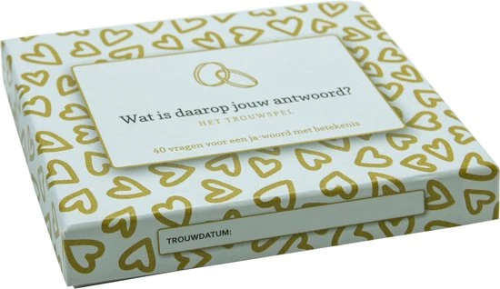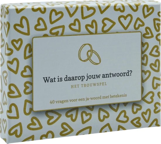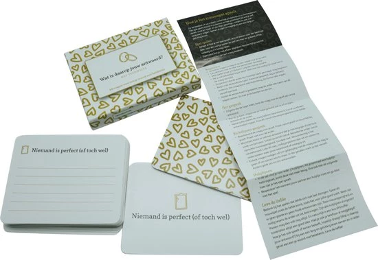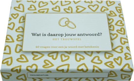 Je kunt het trouwspel ook gebruiken bij het vernieuwen van je trouwbeloftes of voor een verdiepend gesprek met je lief. Wat Is Daarop Jouw Antwoord? moedigt je aan om jouw nieuwsgierigheid te tonen in de ander en jezelf. Om jezelf en je lief (nog) beter te leren kennen en begrijpen.