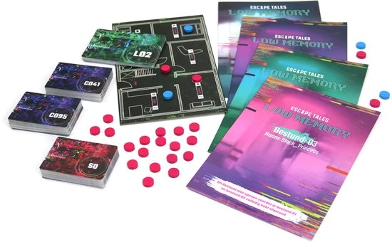 Escape Tales: Low Memory biedt een escape room ervaring in de vorm van een kaartspel. Een spel waarin je door te onderzoeken wordt meegesleept in het verhaal, zonder tijdslimieten voor de raadsels en waarin je een aantal moeilijke keuzes zult moeten maken die je zullen grijpen en mee zullen nemen naar een meeslepend verhaal in een toekomst in cyberpunk setting. Escape Tales: Low Memory is een coöperatief spel. Je beslist gezamenlijk welke gebieden je wilt onderzoeken en je bespreekt gezamenlijk hoe je de raadsels wilt oplossen. Denk goed na over je keuzes, want het spel kan op meerdere manieren eindigen en er is niet altijd sprake van een happy end.